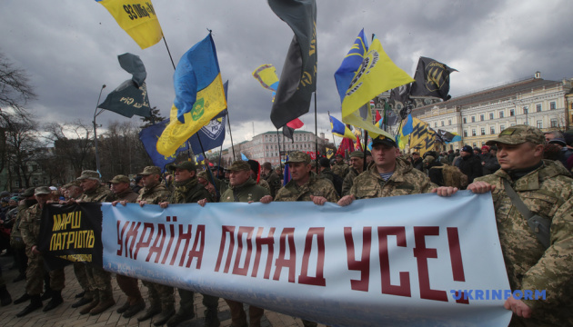 Марш патріотів до Дня добровольця у Києві зібрав близько п’яти тисяч осіб.